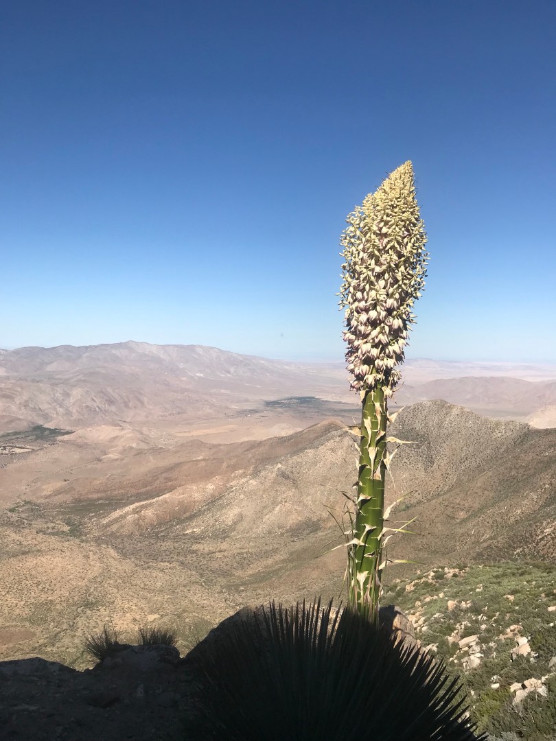 For the afternoon it was a matter of pushing through the heat, the trail mostly undulating with small ups and downs, and some incredible views. I had this image of the desert being one big flat expanse but it is anything but. Towering mountains rising in the distance. Chaparral covering the earth, the dark green juxtaposing white and grey rocks. But it’s damn hot and litres of water are required.
