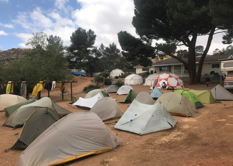 Hiker Heaven is amazing. The property becomes a tent city every night. They do your laundry for free and give you loaner clothes to wear in the meantime. There is a shower tent, an IT/recharge tent, porta toilets, hourly rides to town and twice daily rides to REI in Bakersfield, 60 miles away. Incredible. They dont want anything in return.