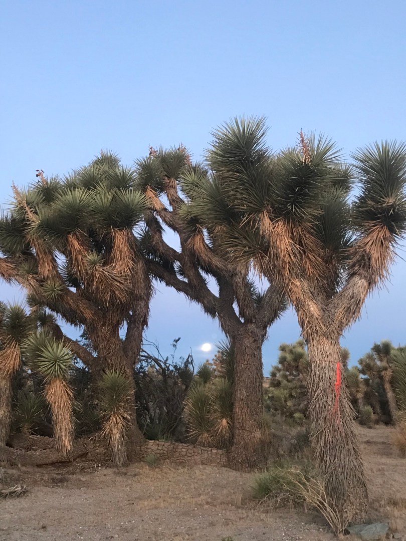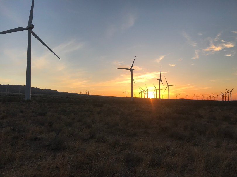 The wind turbines were all quietly rotating away backdropped by the rising sun. Thousands of Joshua trees branching out of the ground en-mass looked amazing.