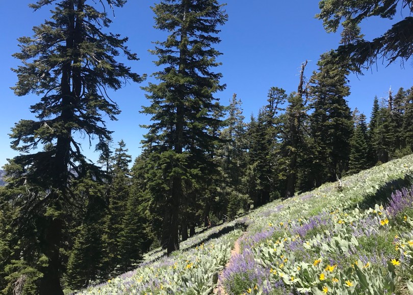 Through the morning I came across quite a few crews of volunteers doing trail maintenance. I stopped to talk to a few and found out the work was in association with the Tahoe 100 coming up in a fortnight, a 100mile mountain run and the event licence makes it conditional that the organisers do trail maintenance. For the last few days the PCT and the Tahoe Rim Trail are one and the same. Any little bit of trail maintenance helps us all. Thank you crews!