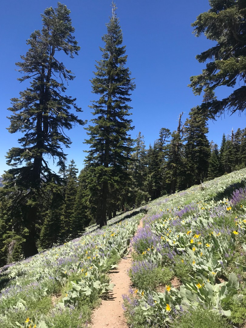 There are still plenty of wild flowers out covering whole hillsides. I think moving north is like following the seasons. The desert bloomed early and now it’s the mountains turn after the snow melt. Everything is blooming and trying to reproduce in the short window of time before the snows return to bury the landscape. Some many flowers, their sweet scents filling the air.