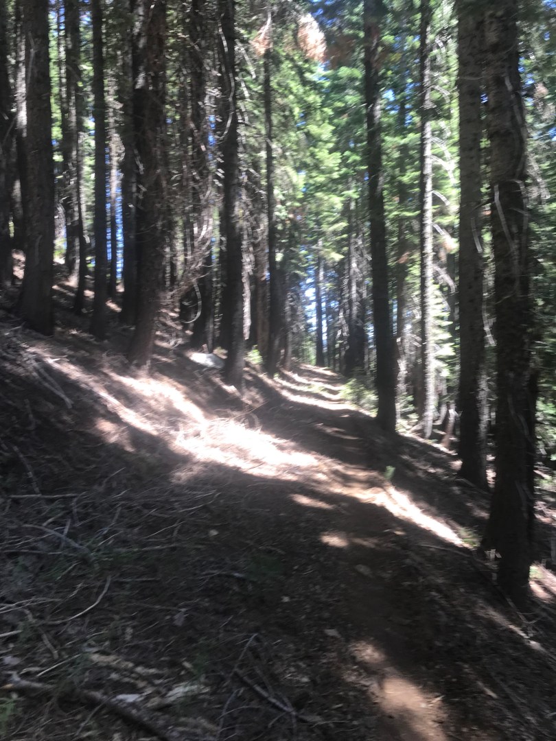 It looks like we are moving through a previously harvested area. On multiple occasions the trail followed along old, reclaimed forest roads. The untrained eye would just view these sections as really well constructed sections of trail but the forester in me quickly picks up on the wide bench and batter of an old forest road.