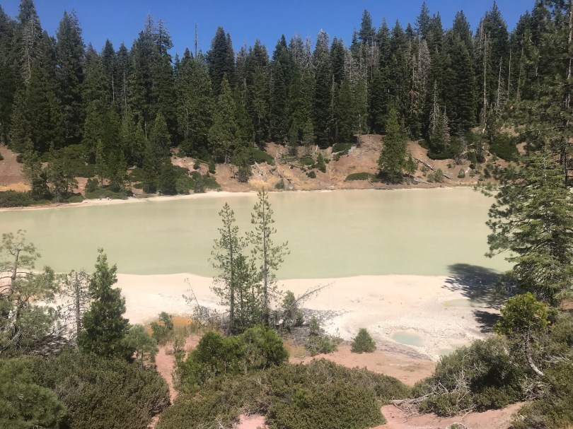 The Lassen Volcanic NP is precisely that, an active volcanic area. While Mt Lassen lies dormant for now there are other areas of geothermal activity in the form of steam vents and boiling lakes dotted around the park. Approaching one such lake you could smell the distinctive sulphurous air well before actually getting to it. I must say I found the attractions of the park a little disappointing to be honest but I’m basing this on my benchmark for such features being Rotaroa in New Zealand, where there are bubbling mud pools in the local city park – it’s hard to beat.