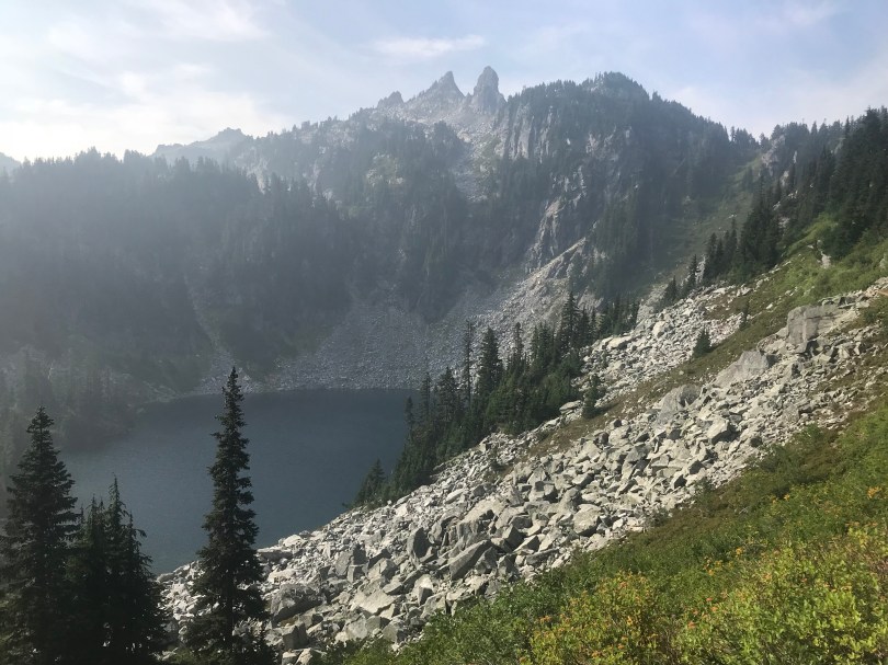 This morning continued the theme of very steep, twisting, turning switchbacks over rocky terrain. The trail lead from one mountain bowl over minor passes and straight down into another bowl, only to repeat the same three or four times.