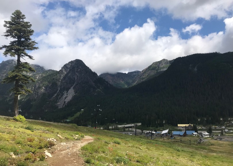 With a about 5 miles to go the rain had cleared and blue skies appeared. I had slowed my pace considerable by this stage, about 2 mile/hour, taking it easy for the descent down through the ski fields to Snoqualmie Pass. I have a hotel room booked here and a resupply package waiting. A well needed shower awaits.