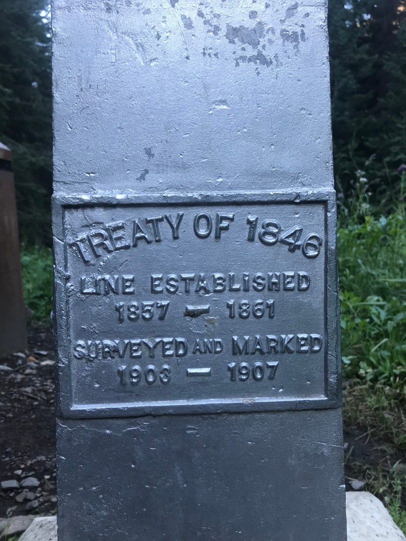 Nearing the border there is an obvious straight clear cut line demarcating the boundary between the US and Canada. Once this is in view, you turn a couple of corners and there it is… monument 78 in a small clearing and the northern terminus of the PCT.
