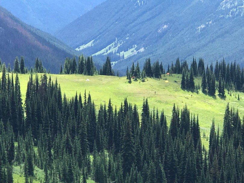Yet more tough climbing got me on top of Woody Pass. Most hikers choose to camp here the night before reaching the border but the sites didn’t look that great to me and I had the hot tip of better sites near Lake Hopkins. As a bonus continuing on means I get the last climb of the trail out the way and it puts me within 6 miles of the border. Woohoo!