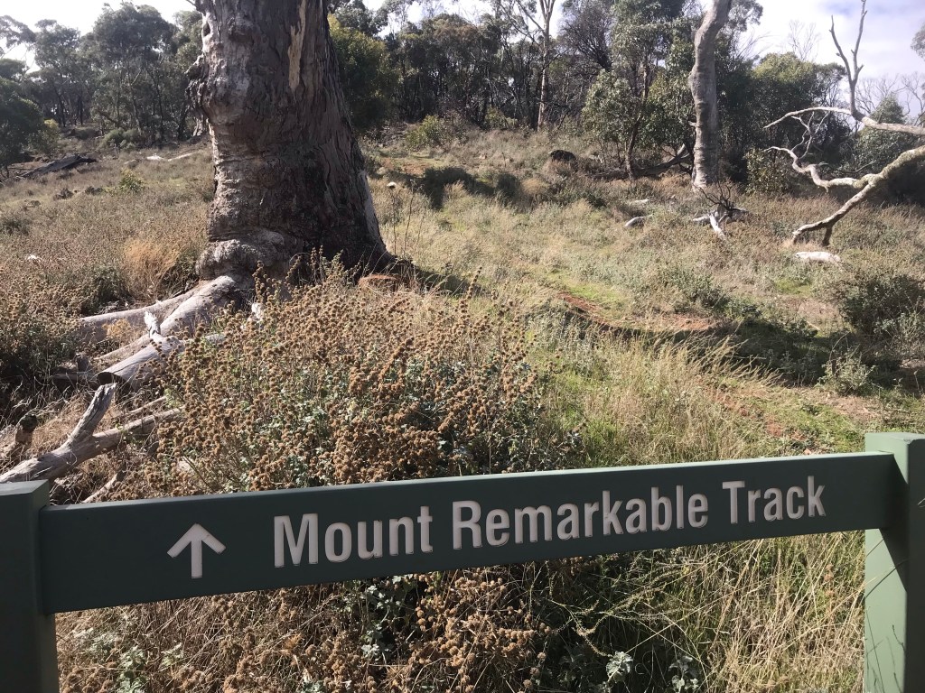 I finally reach the top of Mount Remarkable just before 1pm. I sat down for some lunch but didn’t hang around long. I could barely stomach anything and with a saturated shirt the wind cut through starting to chill me to be bone. It was time to get out of there. Seven kilometres of descent and I’d be in Melrose. Maybe I’d feel like hot chips or something else by the time I made it down.