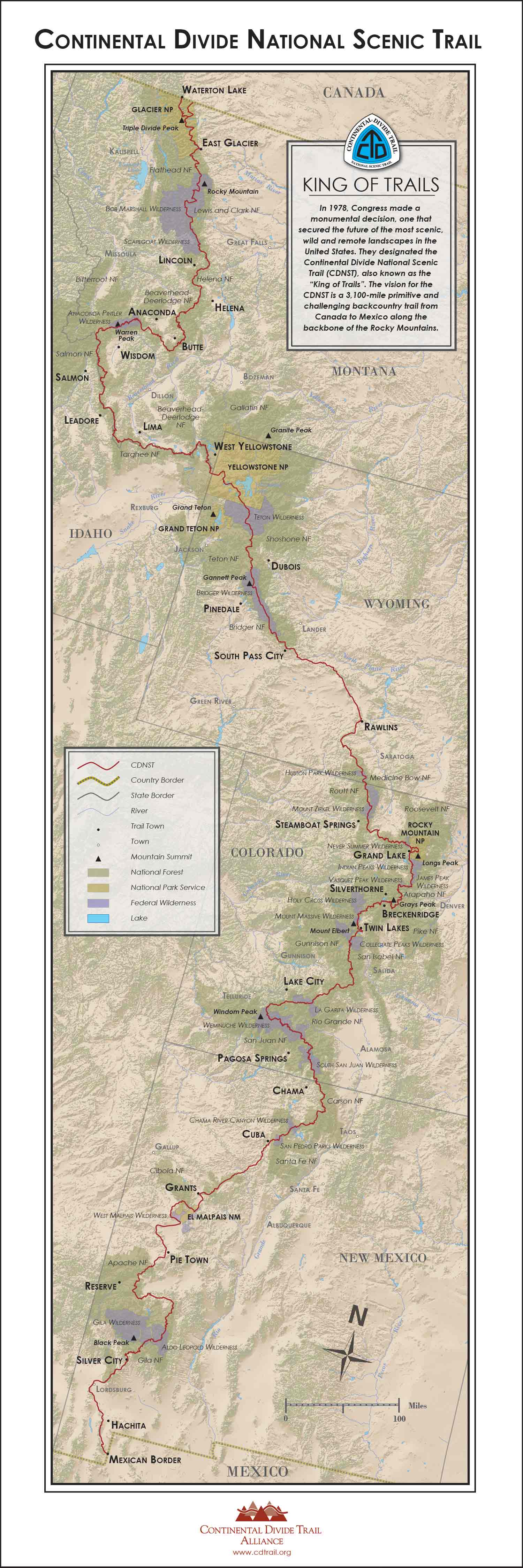 It has been eons since my last post and with four weeks to go before flying to the United States to embark on another epic adventure it is about time I pulled by myself into gear to spruik it. As the title suggests, you know which trail I’m headed too and from the opening sentence what country it’s located. Let me tell a little more. Established in 1978 the Continental Divide Trail (CDT) is a roughly 3,100 mile (4,989 km) trail stretching from the US-Mexican border near the sleepy town of Hachita, New Mexico roughly following the Continental Divide through the Rocky Mountains all the way to Waterton Lake on the US-Canadian border. I say it’s roughly 3,100 miles because unlike other long trails the CDT is more a choose your own adventure route with many alternate sections available. Some hikers will cut huge sections off to hike around 2,700 miles, while others choose to follow the offical route, or what hikers call the ‘Red Line’ to make up the full distance. Me, I’ll be in between here somewhere choosing to take a bunch of alternatives off the Red Line for some side quests before rejoining and continuing north. (Why is it called the Red Line? Because that is the colour of the trail on the main navigation App most hikers use called FarOut).