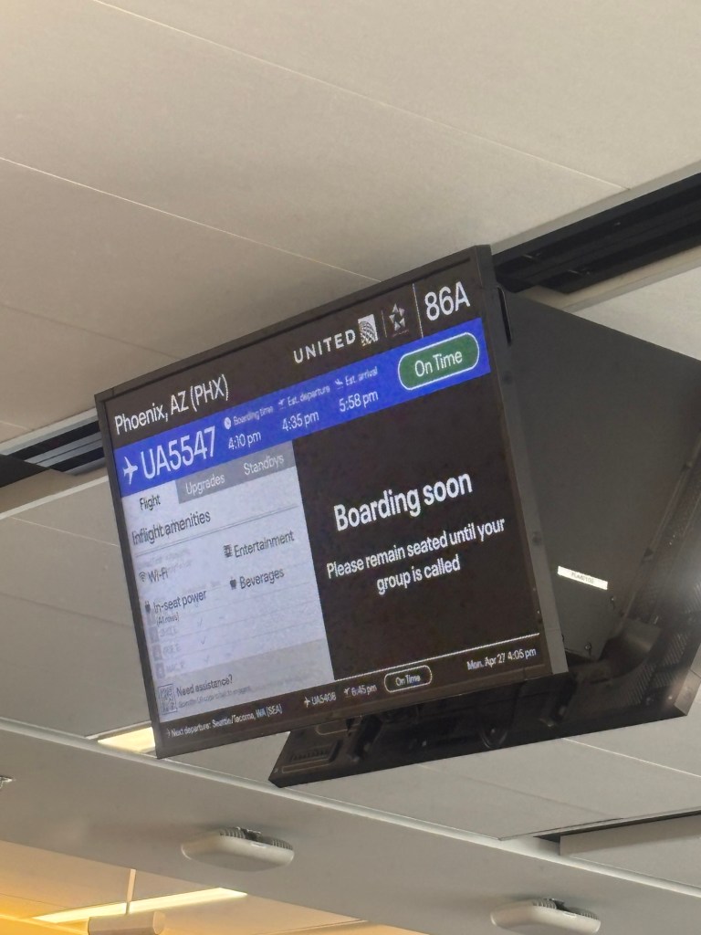 The travel wasn’t quite done. More security and one more flight, only a short 50 minutes, from LA east across to Phoenix and a short cab ride to my hotel.